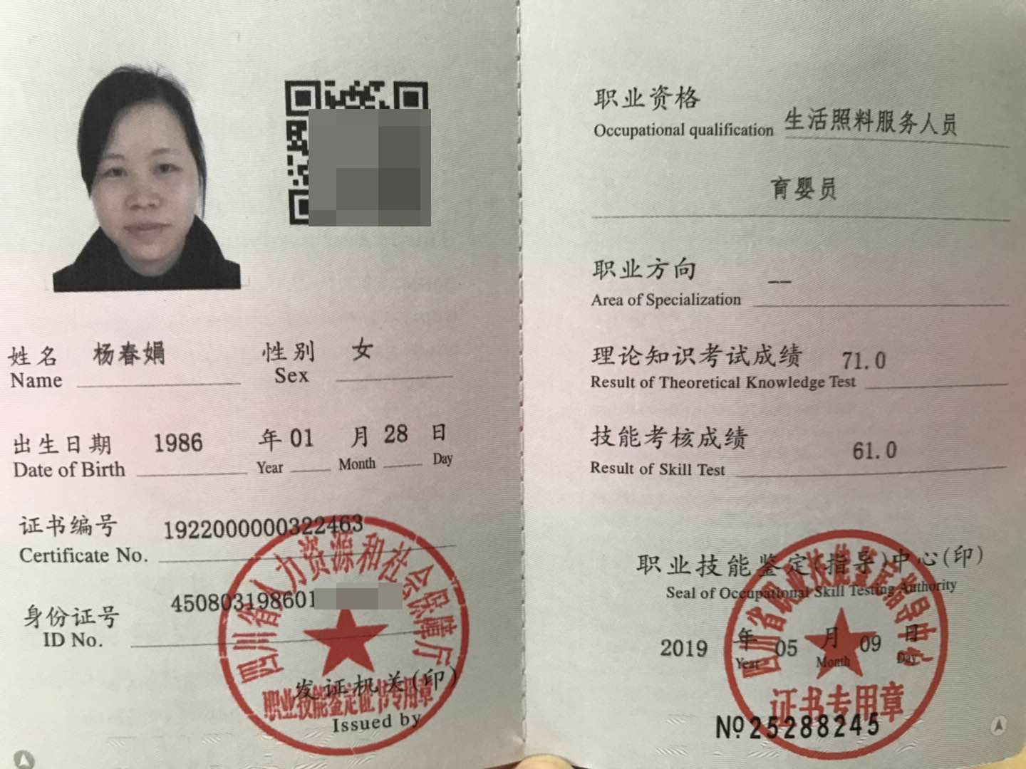 專業(yè)技術:五星個人衛(wèi)生:五星